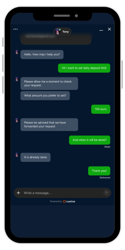 ένα ευρύ φάσμα εργαλείων υπεύθυνου παιχνιδιού: όλα μπορούν να ρυθμιστούν γρήγορα μέσω της υποστήριξης