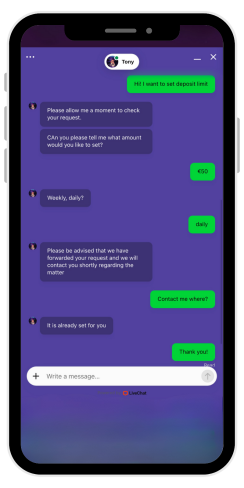 Ισχυρά εργαλεία υπεύθυνου τζόγου - τα όρια στις καταθέσεις, τις απώλειες, τις συνεδρίες και τα στοιχήματα μπορούν να οριστούν μέσω της υποστήριξης και το όριό μου εφαρμόστηκε αμέσως μετά το αίτημα.