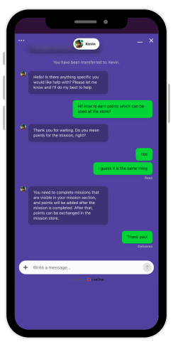Για ταχύτερη βοήθεια, είναι προτιμότερο να χρησιμοποιήσετε τη ζωντανή συνομιλία. Κατά την προετοιμασία αυτής της αναθεώρησης του Bizzo, το χρησιμοποίησα πιο συχνά. Μπορείτε να βρείτε το σύνδεσμο συνομιλίας ανοίγοντας το κύριο μενού και επιλέγοντας Επαφές. Για να συνδεθείτε, θα πρέπει να εισαγάγετε το όνομα και το email σας. Ένας εικονικός βοηθός θα εμφανιστεί αρχικά και θα προσφέρει αυτοματοποιημένες απαντήσεις σε θέματα όπως: Μπόνους κατάθεσης, Άλλες προσφορές του Bizzo Casino, Πρόγραμμα VIP, Κατάθεση/Ανάληψη, KYC, T&C, Θέμα στοιχήματος καζίνο, Ο λογαριασμός μου κ.λπ. Για να επικοινωνήσετε με έναν πραγματικό πράκτορα, αρκεί να πληκτρολογήσετε αυτό το αίτημα στη συνομιλία. Ο πράκτορας συνδέεται αμέσως και παρέχει βοήθεια πολύ γρήγορα.